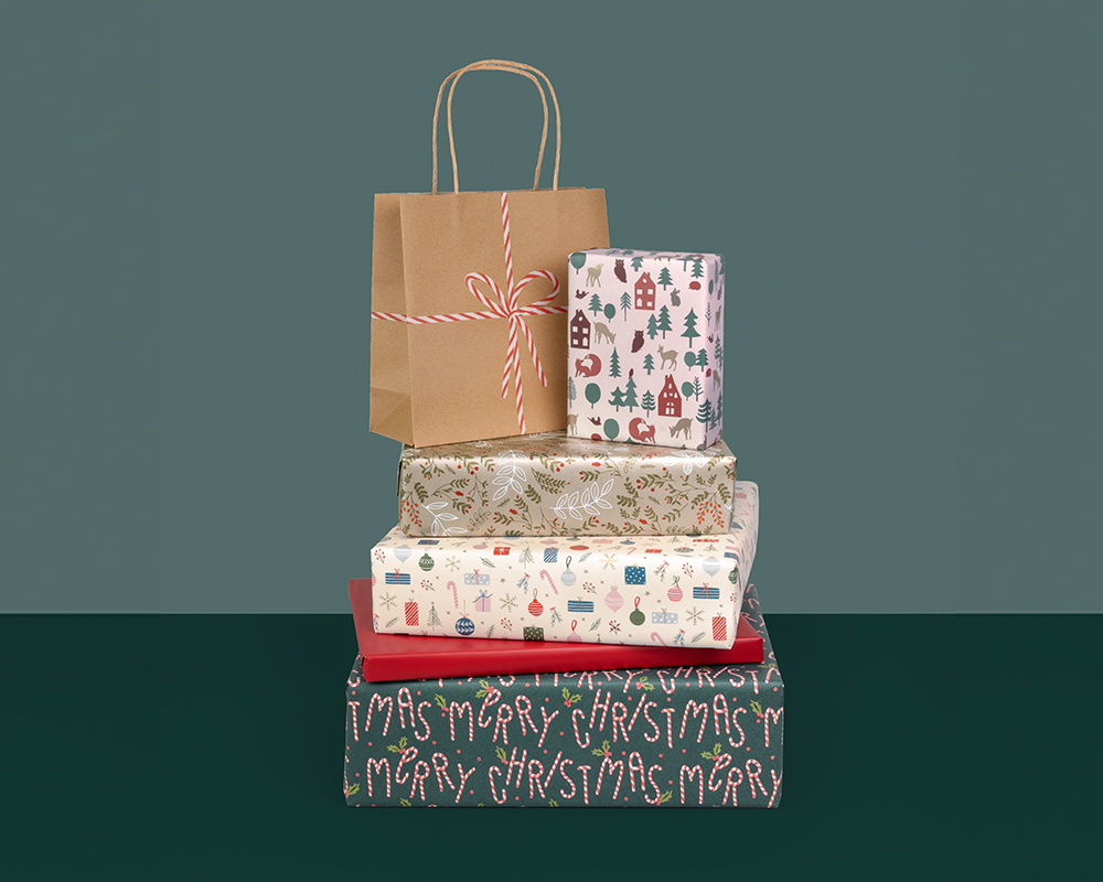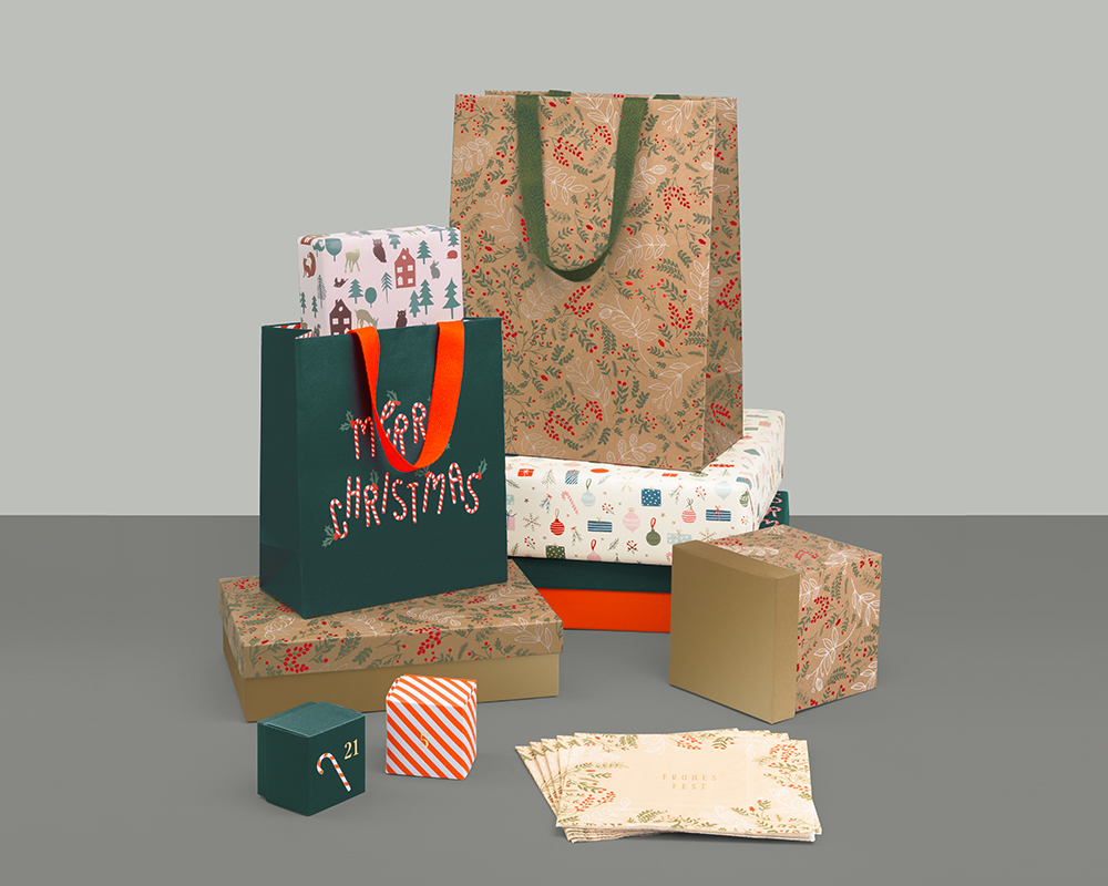Diese traditionelle Themenwelt ist eine verspielte Geschenklinie, bei der weihnachtliche Symbole modern inszeniert sind. Die Farben sind klassisch gehalten, Tannengrün und ein warmes Rot für eine besinnliche Adventszeit.
